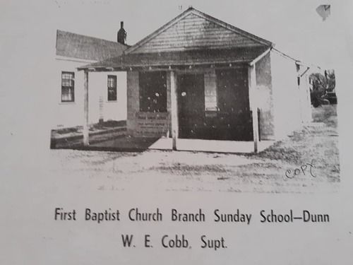 During the year of 1951, the First Baptist Church with the Rev. E. P. Russell, as Pastor, started making plans for a Branch Sunday School in this community. A committee was appointed by the church to be responsible for the church. W.E. Cobb, L.L. Coats, L.R. Norris. Mrs. V.L. Stephenson, Mrs. K.M. Wood and Robert Draughon. Later, Joseph Norris, Sr. was added to the committee.